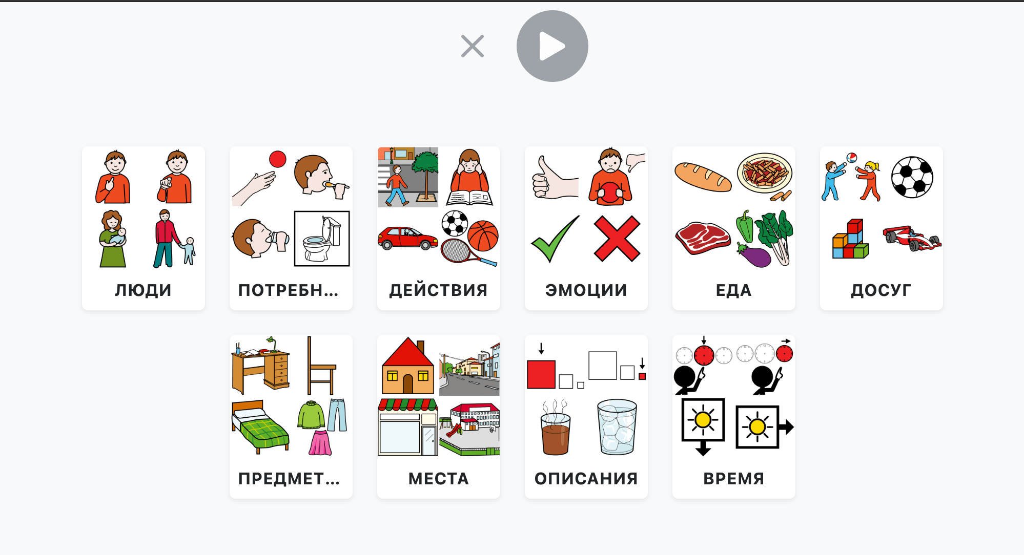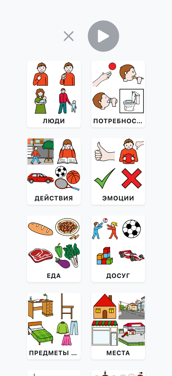 Карточки, сгруппированные по категориям.Это именно то, что я искала несколько лет. Приложение помогает сыну выражать свои желания и мысли, а синхронизация карточек между всеми участниками делает работу удобной и понятной. Отдельно хочу отметить гибкие настройки и поддержку команды.